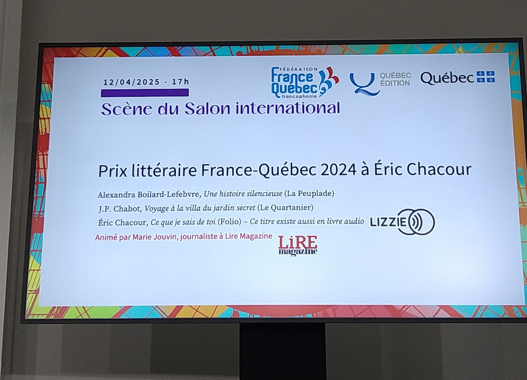 Étiquettes : Corinne TartareEric CHACOURJean-Pierre TARTAREPrix Littéraire France QuébecPrix Littéraire France Québec 2024